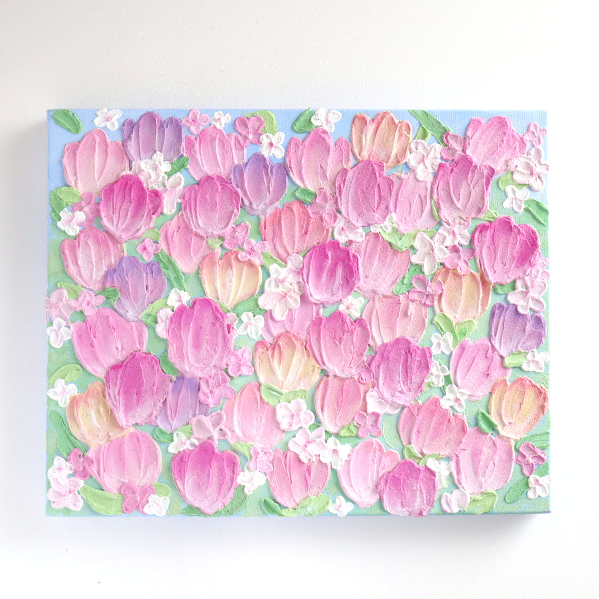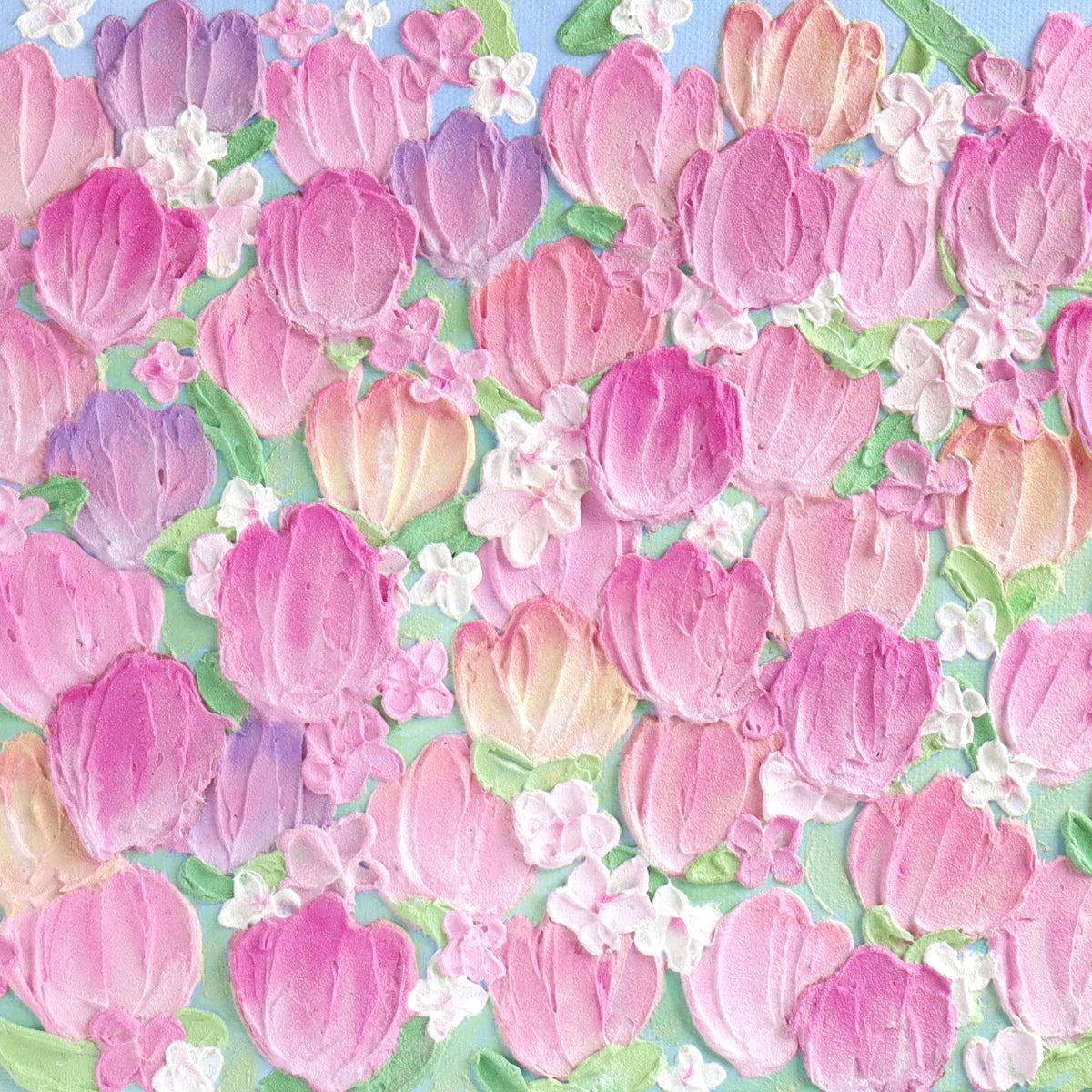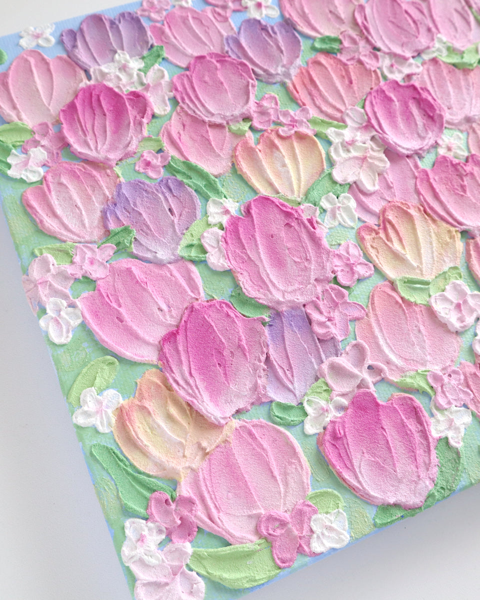 A tulip field captured on canvas.